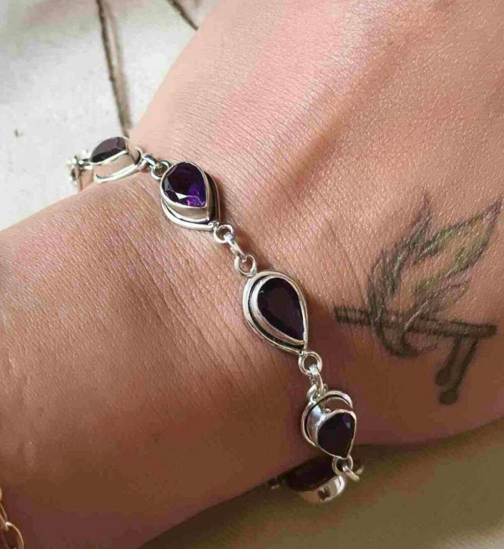 925 Sterling Silver Amethyst Bracelet - Protect your aura with elegant Adjustable Bracelet.