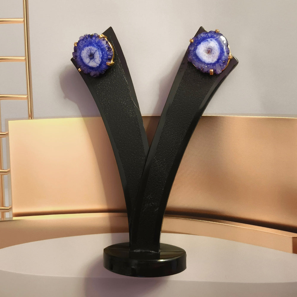Blue agate stone 18k gold plated ear stud – Stone of transformation with elegant.
