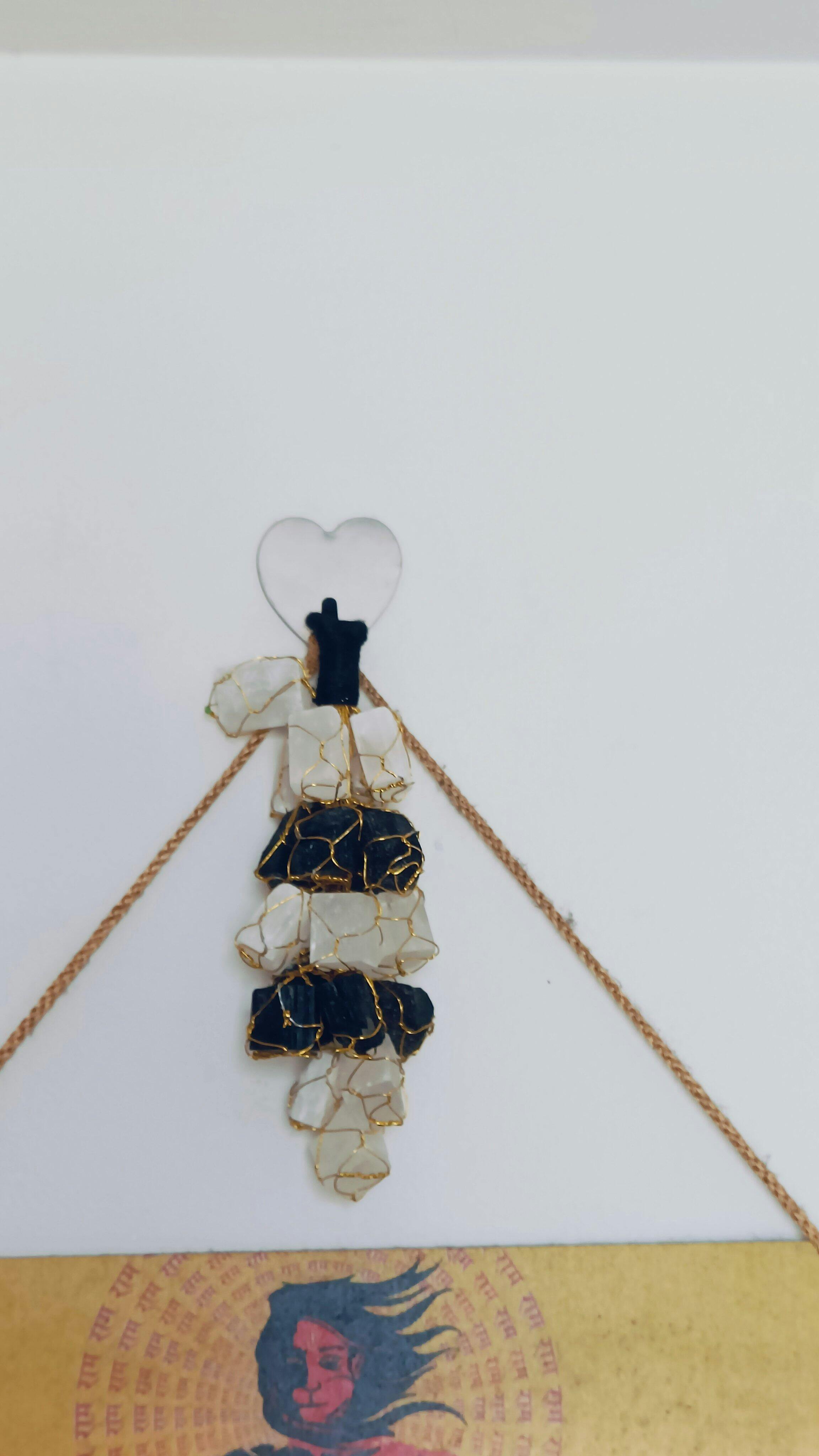 A Selenite and Black Tourmaline hanger combines two powerful crystals to offer protection, cleansing, and grounding benefits: