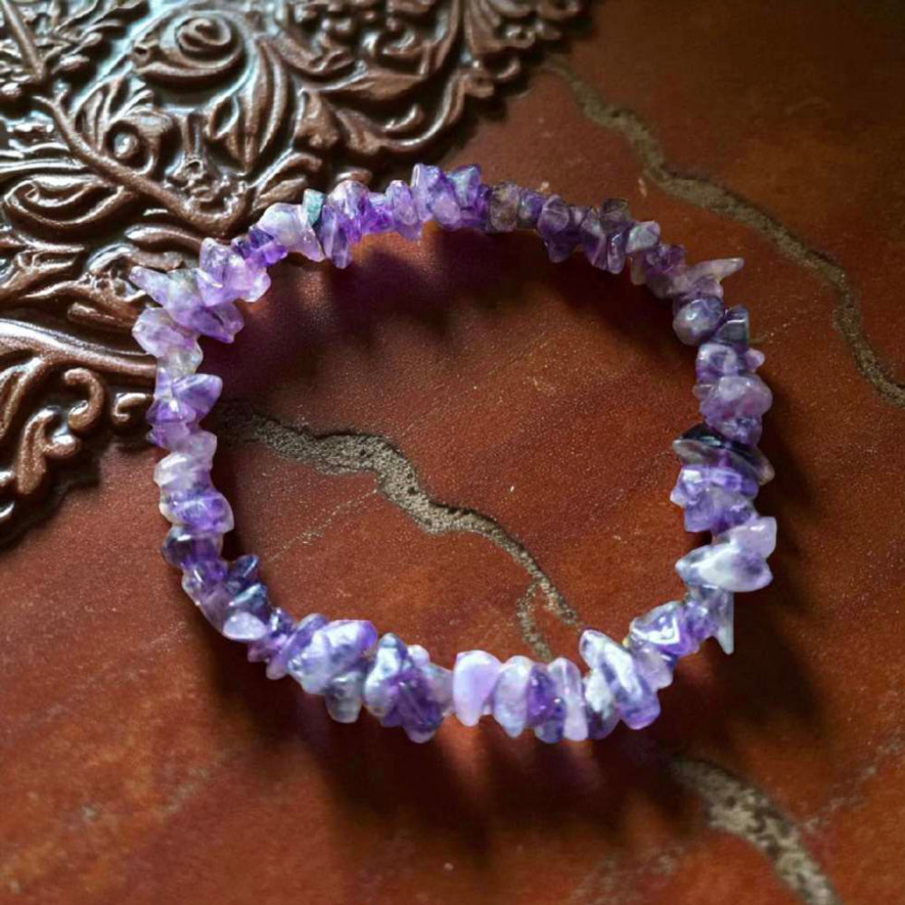 Natural Amethyst Crystal chips Bracelet – Clear negative energy, blockages & Enhance Clarity Spirituality.
